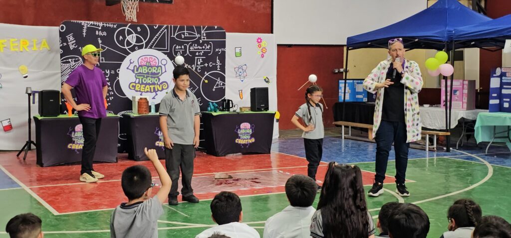 Además de la presentación de proyectos, buscamos integrar el aprendizaje lúdico. Por ello, invitamos al Laboratorio Creativo , cuyos animadores realizaron un espectáculo de experimentos en vivo que resultó ser un éxito rotundo entre los niños y niñas, quienes disfrutaron y aprendieron . Este evento confirma que la ciencia y la tecnología ocupan un lugar importante en nuestra propuesta educativa.