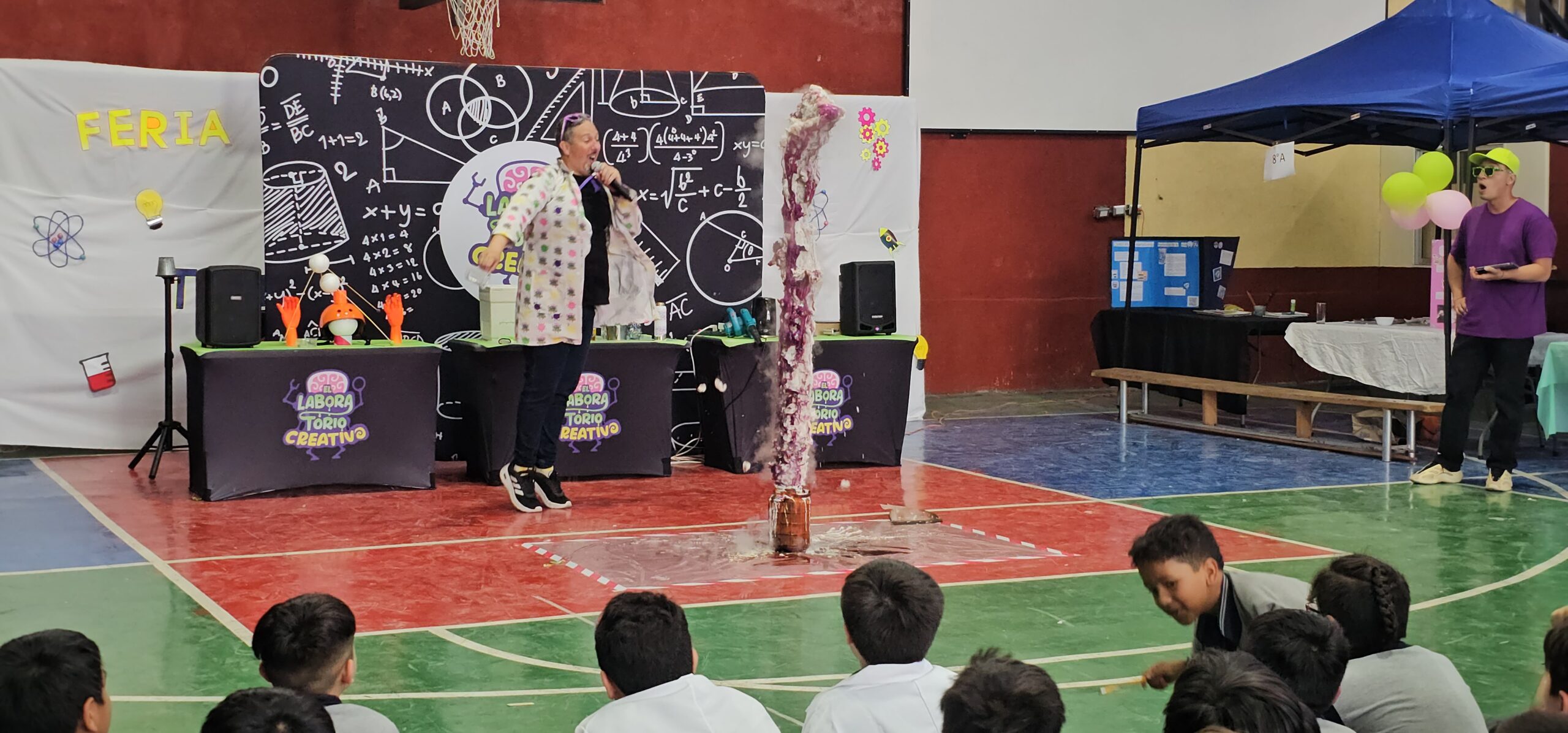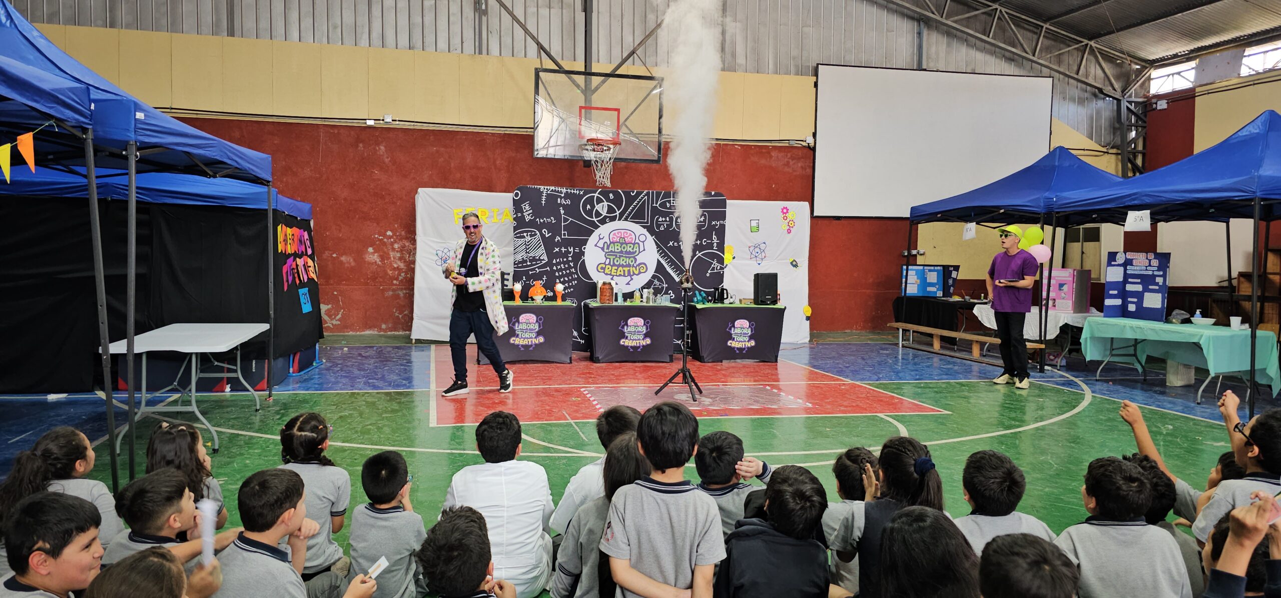 Además de la presentación de proyectos, buscamos integrar el aprendizaje lúdico. Por ello, invitamos al Laboratorio Creativo , cuyos animadores realizaron un espectáculo de experimentos en vivo que resultó ser un éxito rotundo entre los niños y niñas, quienes disfrutaron y aprendieron . Este evento confirma que la ciencia y la tecnología ocupan un lugar importante en nuestra propuesta educativa.